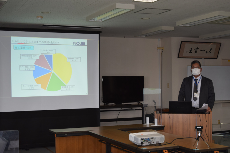 その後、犬山名鉄ホテルで昼食を取りながら、濃尾グループ70年のあゆみのDVDを上映するなどして、親交を深めるとともに、本年の工事・作業の安全第一を確認しあうことができました。