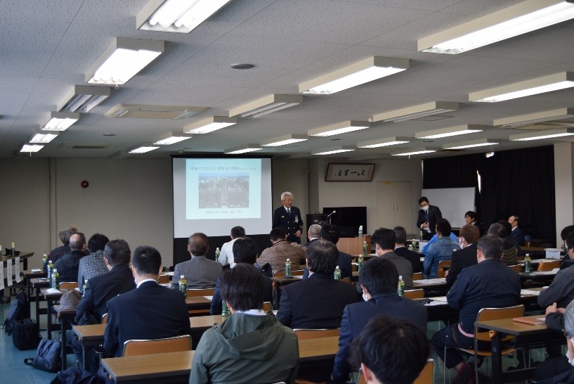 名古屋市消防局瑞穂消防署予防課の前田課長より「事業所の防火・防災について」をテーマに講演して頂きました。過去の大規模火災を教訓とした消防法令の変遷や最近の事業所火災事例など、大変興味深く聴講し、多くの学びを得ることができました。